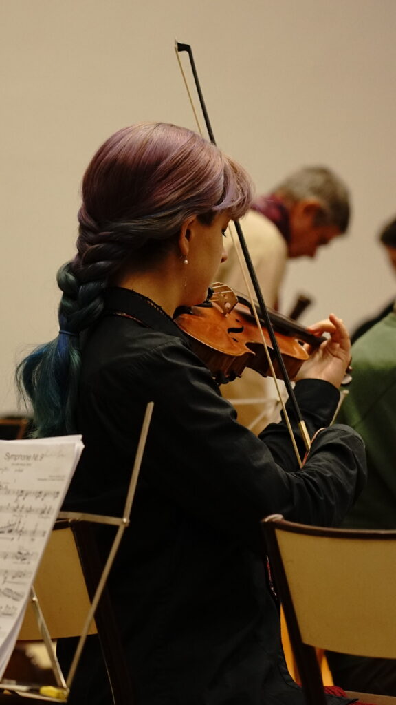 Une étudiante de l’Orchestre Universitaire pendant la répétition générale. ©Matthieu Delour