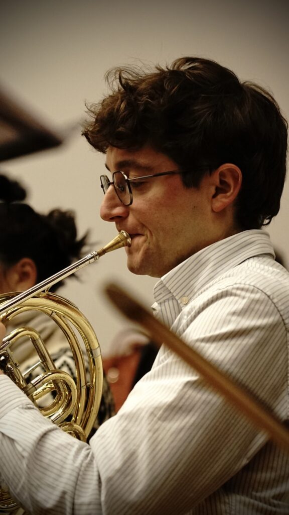 Ce lundi 8 décembre à 20 heures, tandis que le campus de l’Université Bordeaux Montaigne se vide de ses dernier·es étudiant·es, l’amphithéâtre 700, lui, s’anime. Comme chaque semaine, les jeunes de l’Orchestre Universitaire arrivent par petits groupes, instruments sur le dos et sourires aux lèvres. Mais ce soir, la répétition a une saveur particulière : c’est la dernière avant les grands concerts de décembre, prévus mardi 9 décembre à la Station Marne (20h30) et mercredi 10 décembre dans ce même amphithéâtre de l’université (20h30). Au programme : des pièces majeures de Brahms et Dvořák, interprétées par 65 musicien·nes et les solistes Guillaume Chilemme et Thomas Duran.