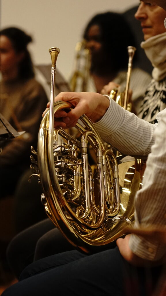 Les étuis s’ouvrent, les archets se tendent, les vents ajustent leurs anches : dans un joyeux tumulte, les musicien·nes se préparent et discutent de mesures. Qu’ils ou elles aient fréquenté le conservatoire ou non, tout le monde se retrouve ici pour la même raison : le plaisir de jouer ensemble. « Dans un orchestre, les sensations sont très fortes : sentir les vibrations d’une cinquantaine de musiciens autour de soi, c’est magique ! » s’exclame Julie, qui se dédie entièrement à la musique depuis la fin de ses études. À ses côtés, Lucas, récemment diplômé en informatique, acquiesce et raconte avec enthousiasme : « C’est pour rejoindre un ensemble symphonique que j’ai commencé un deuxième instrument. » Voilà ce qui l’a mené à troquer sa guitare pour le hautbois.