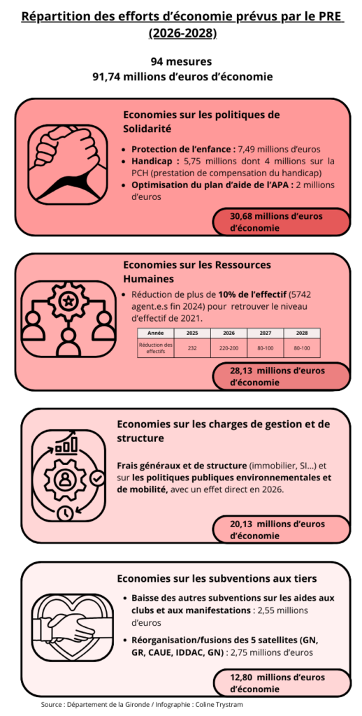 En effet, après la présentation d’un budget en déséquilibre le 13 octobre dernier, le préfet a saisi la Chambre Régionale des Comptes (CRC). Elle a alors contraint le Département à préparer un plan de redressement pour aboutir à des économies d’au moins 73 millions d’euros. Plus ambitieux que les recommandations de la CRC, le plan proposé par le Département prévoit 91 millions d’euros d’économies sur trois ans.